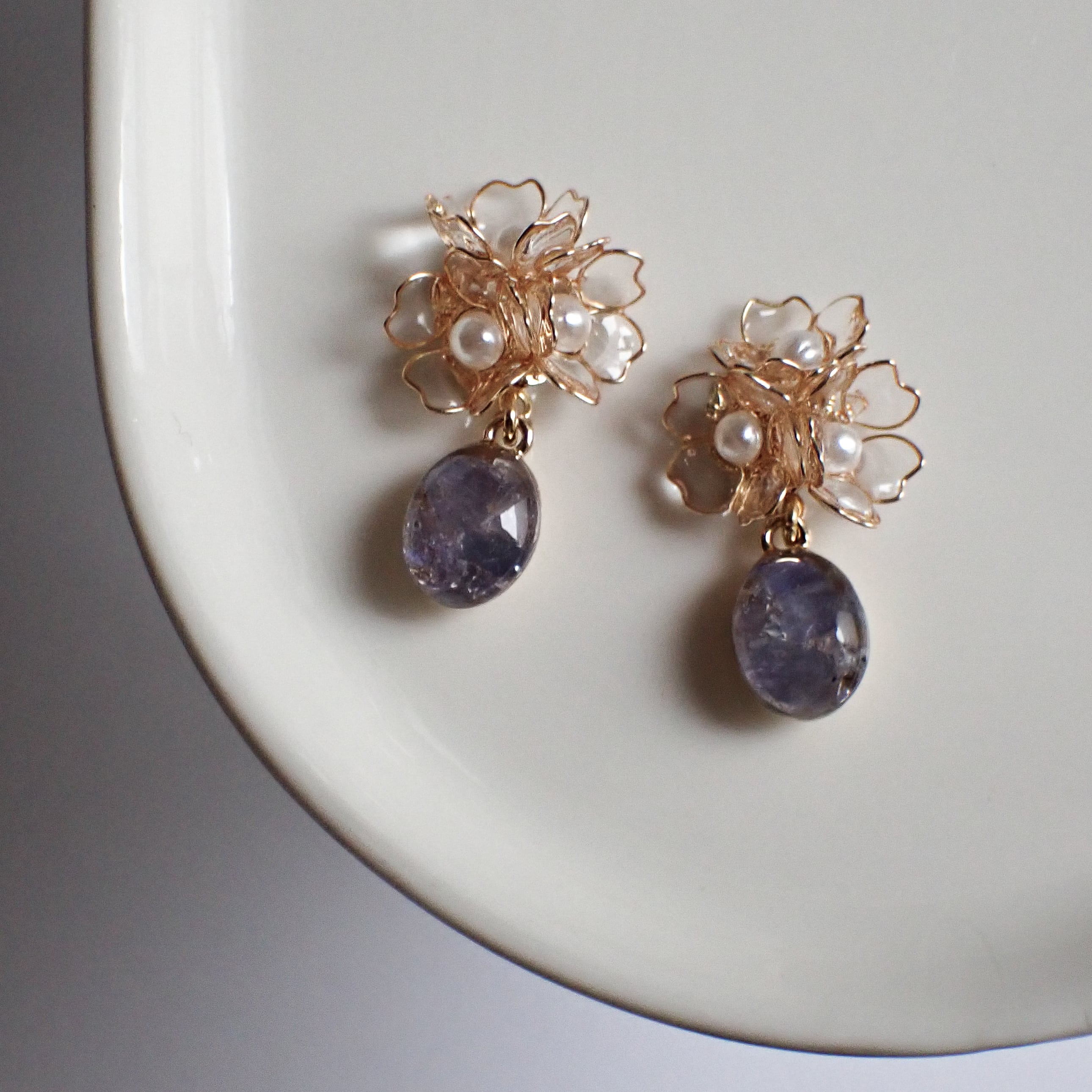今回は、夕暮れ時の切なくも美しい桜の佇まいをアクセサリーデザインに。