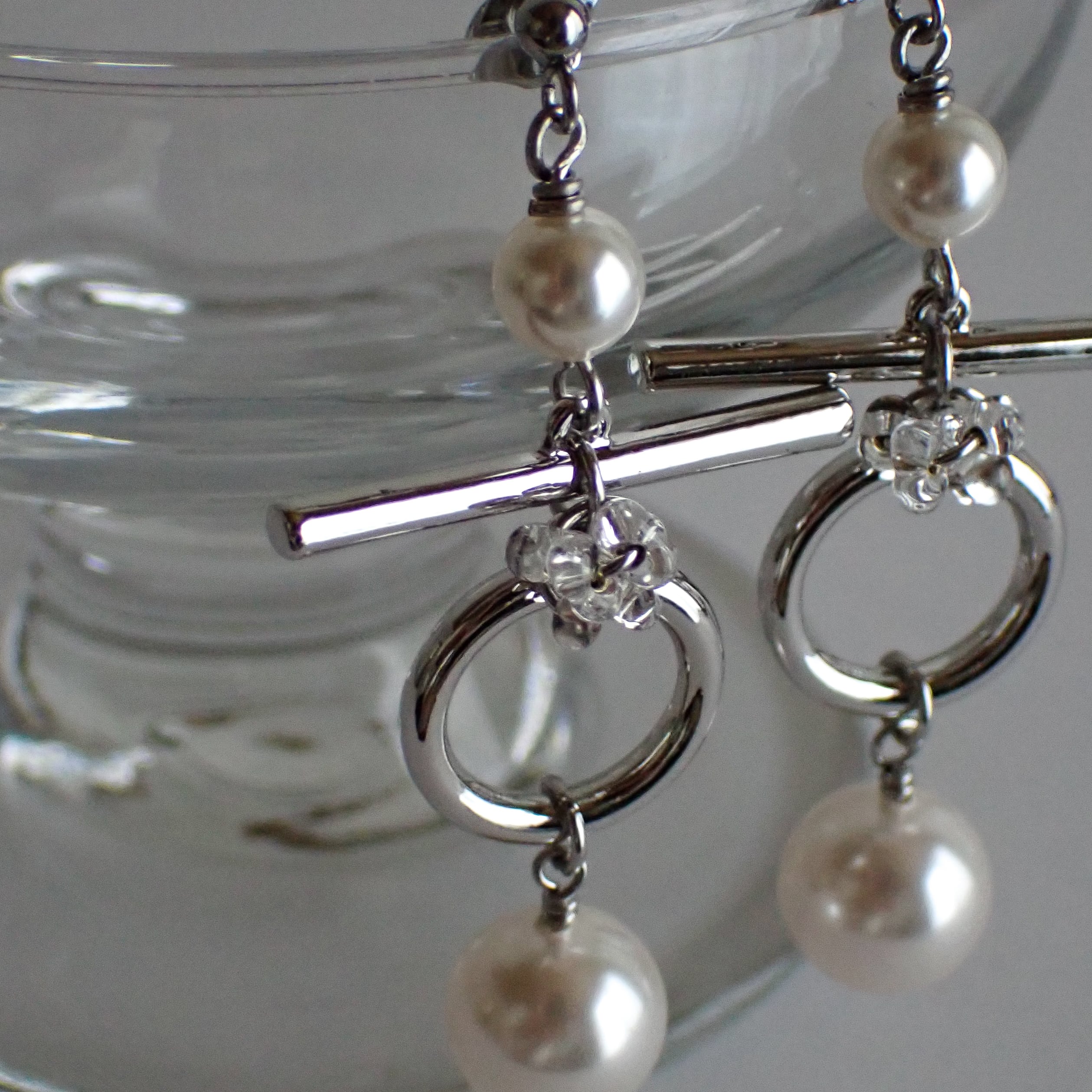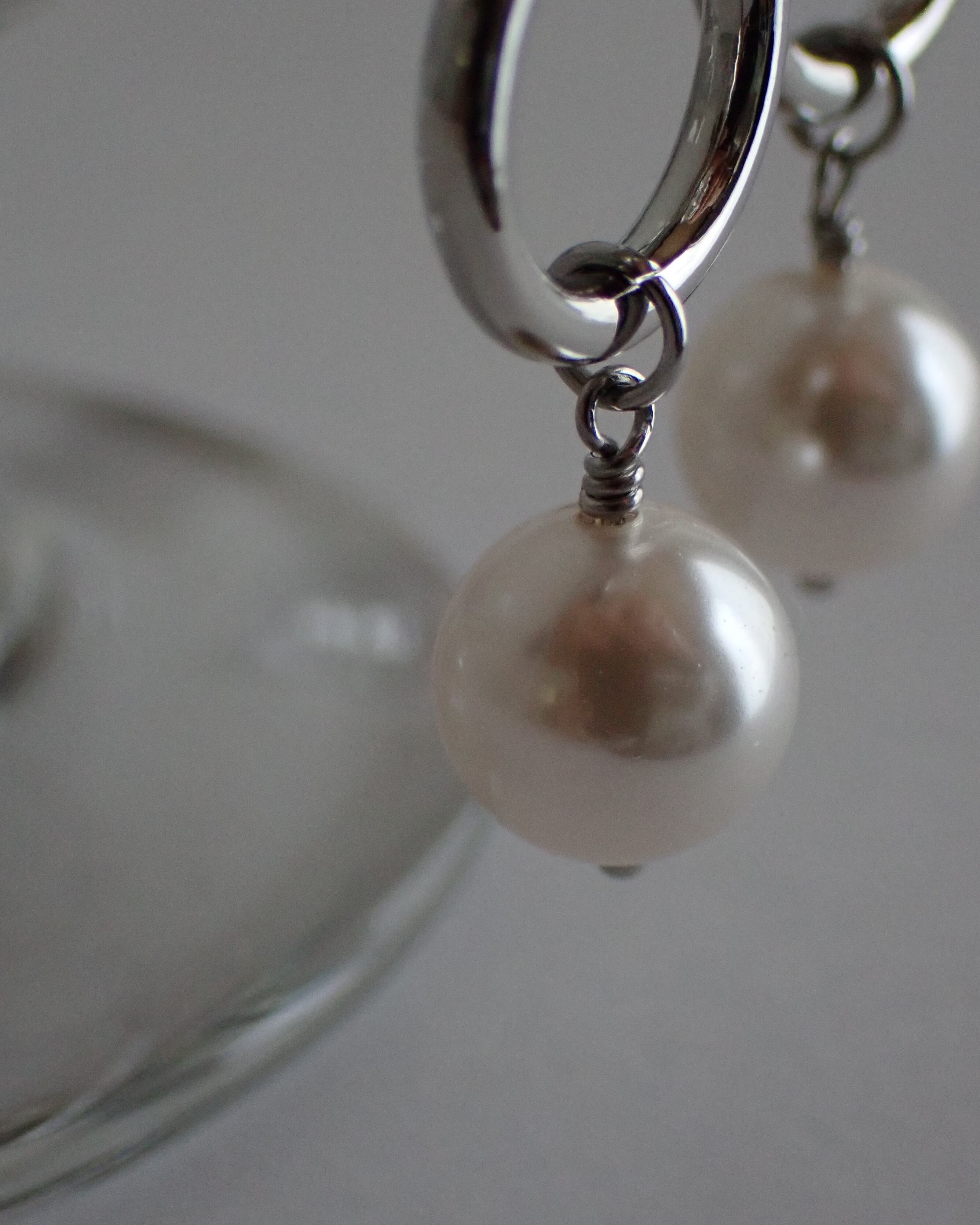 シャープなラインを描くマンテルと、柔らかな光を放つパールの組み合わせが、耳元に都会的でモダンな印象を与えます。